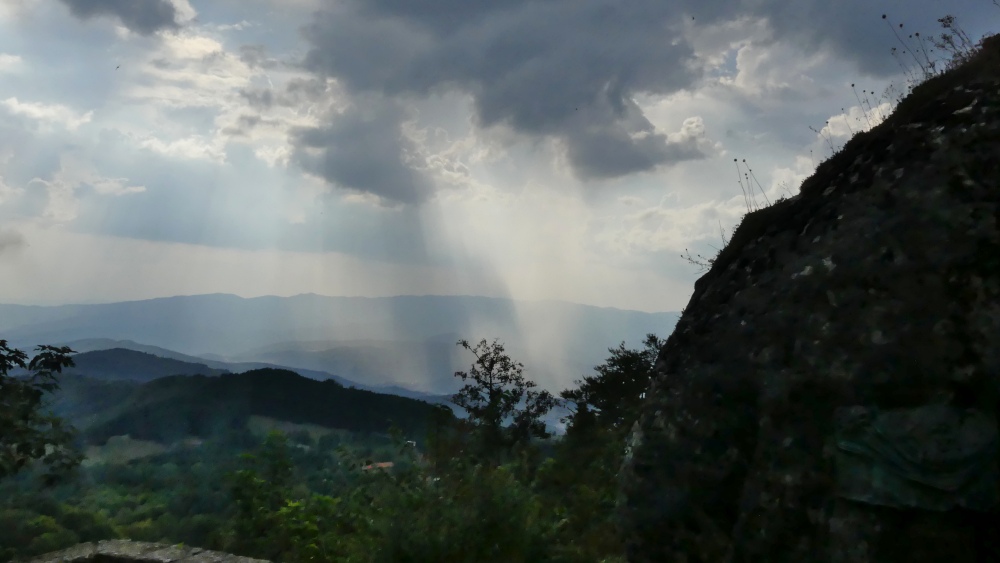Mit Tempo geht’s bergab, erst ziemlich steil. Später lichtet sich der Wald und es wird flacher. Am Ausgangspunkt wieder angekommen gönnen wir uns die obligatorische Leckerei, nämlich Kaffee und Kuchen. Das Gewitter hat sich mittlerweile verzogen. Kurz darauf steigen wir in den Wagen und düsen zurück nach Arezzo in unsere Unterkunft.