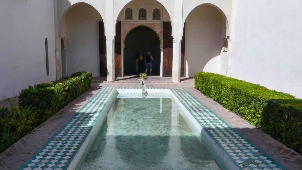 Hier bewunderst du die filigranen Ornamente und geschwungenen Hufeisenbögen. Ein Wasserbecken im Innenhof spendet im Sommer erfrischende Kühle.