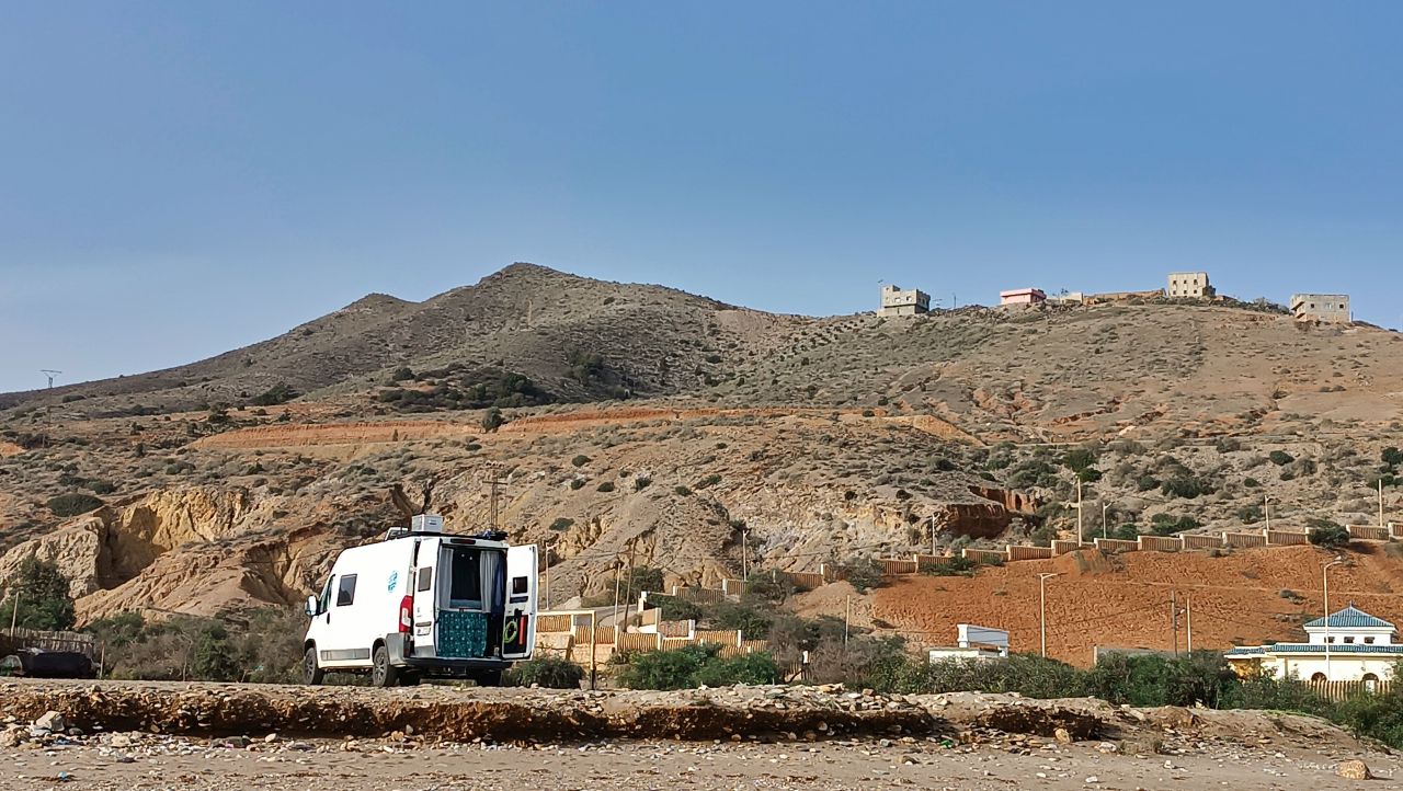 Übernachten wollen wir hier nicht, auch wenn wir hier sicher ungestört stehen könnten. Wir fahren noch ein Stück weiter, passieren die Stadt Al Hoceima und finden bei Sidi Hsain einen ruhigen Platz am Strand.