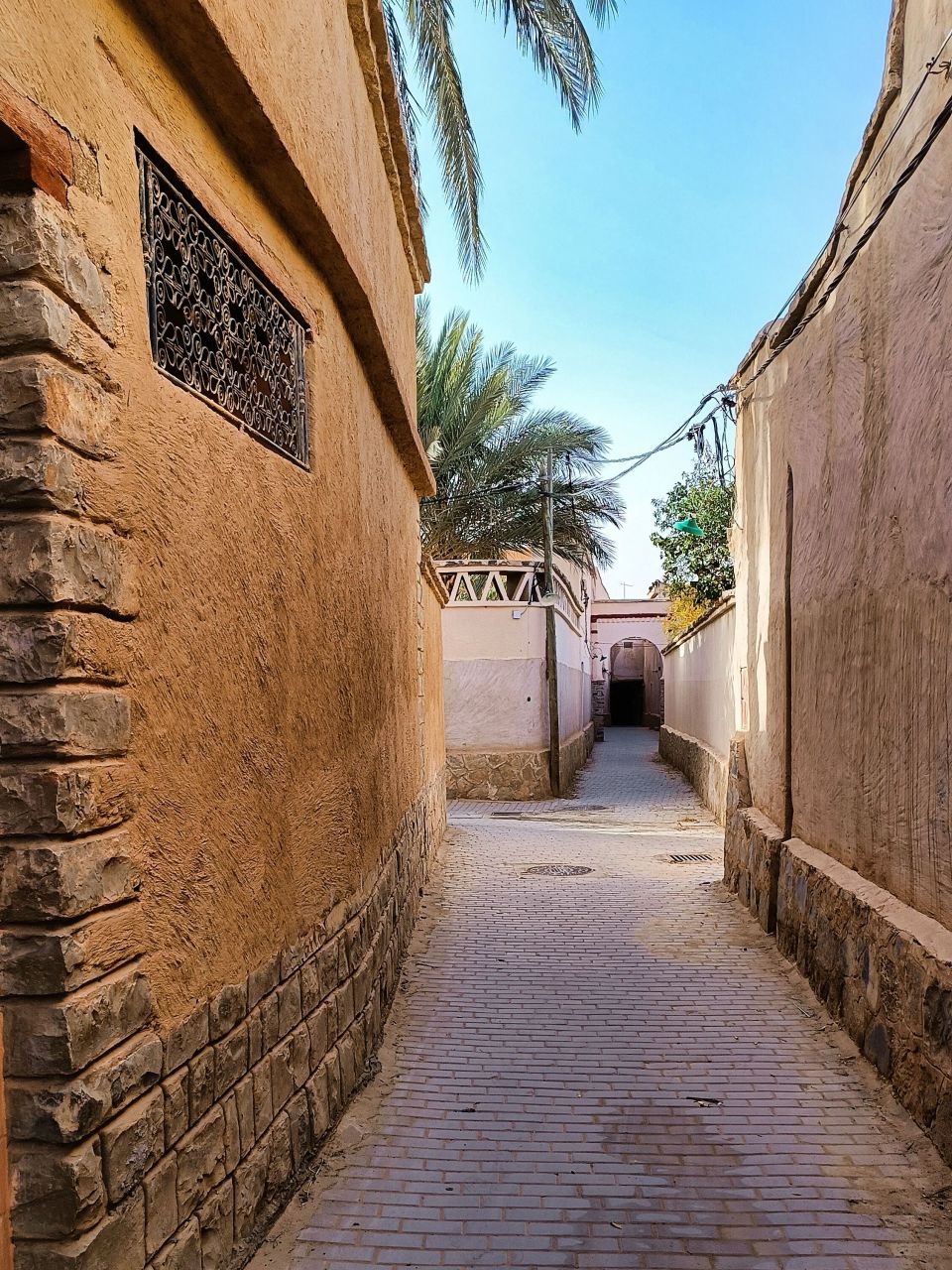 Wir unternehmen eine Tageswanderung durch die Oasengärten. Weg vom Trubel der Hauptstraße geht es zunächst durch ruhige Gassen bis zum alten Minarett. Es ist das einzige historische Monument, das erhalten ist. Das achteckige Minarett stammt aus dem 13. Jahrhundert.