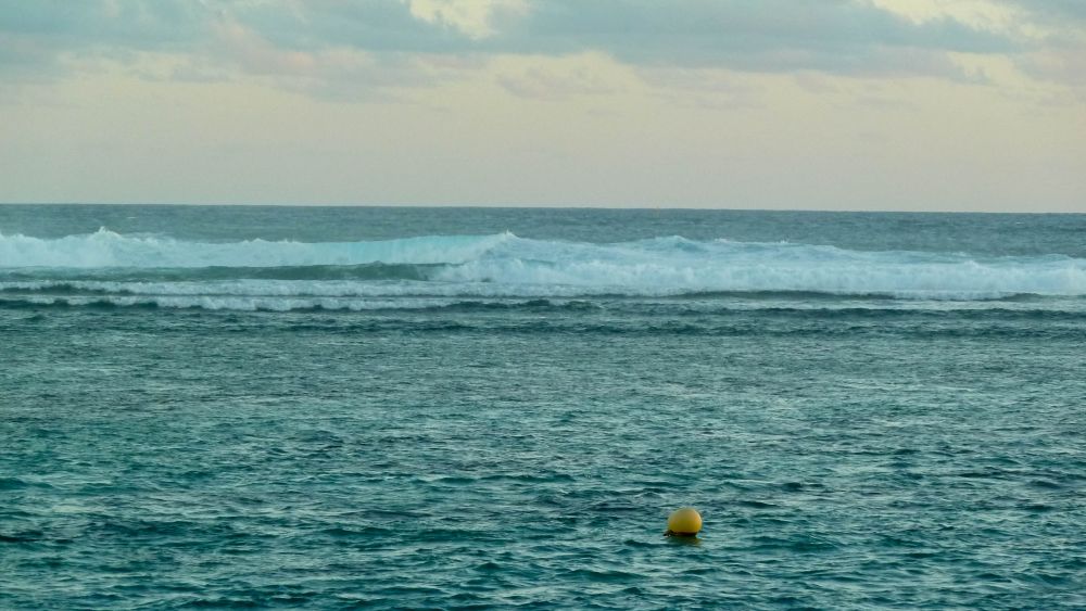 Draußen am Riff brechen sich vier bis fünf Meter hohe Wellen, ein eindrucksvolles Spektakel. Der Wind verweht die Gischt zu langen Schleiern. Innerhalb der Lagune ist es relativ ruhig und das Wasser hat eine sehr angenehme Temperatur.