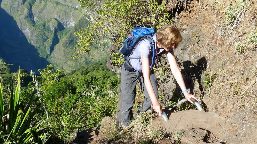 Da der Spaß am Gipfelerklimmen ja zu einem großen Teil darin besteht, die Aussicht von oben genießen zu können, fällt damit der Aufstieg zum Col Taibit aus. Als Alternative wählen wir die Wanderung zu dem Wasserfall Cascades de Bras Rouge. Da bleiben wir in einer Höhe, in der wir nicht durch Wolkennebel wandern müssen.