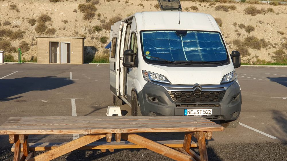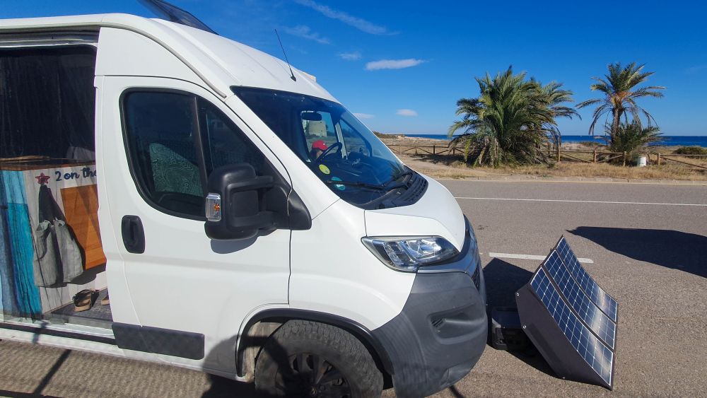 Wir waren im Herbst und Winter in Spanien unterwegs. Mit unserem Solarmodul, das unsere Lithiumbatterie mit Strom versorgt, sind wir oft an die Grenzen gestoßen. Auch wenn den ganzen Tag die Sonne schien, ist der Sonnenstand doch sehr niedrig, so dass nicht genug Energie reinkam.