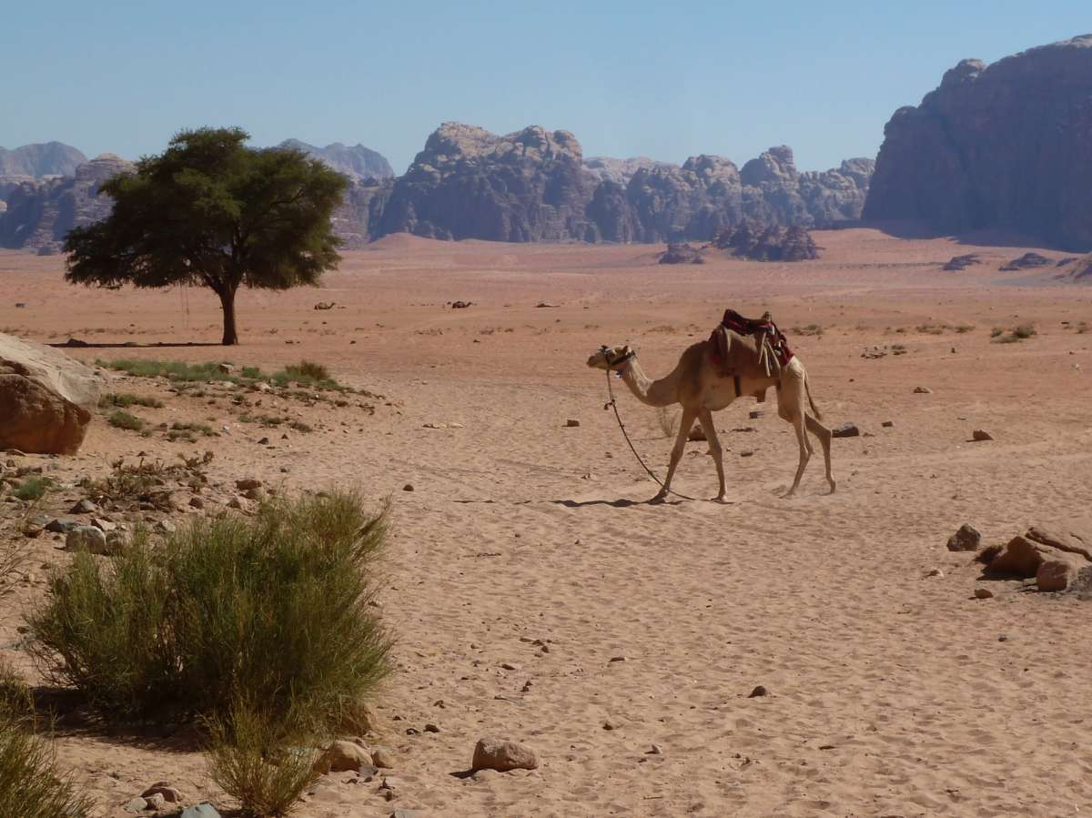- Ausrüstung: Der Talboden des Wadi Rum liegt auf 1000 Meter Höhe. Wir sind auf unserer Wanderung bis 1700 Meter aufgestiegen. Dort weht im Oktober schon mal ein frischer Wind und wir waren froh über die warmen Jacken, die wir mit hatten. Auch abends wird es frisch. Die Decken im Camp waren warm genug. Wir empfehlen ein leichtes Seideninlett*